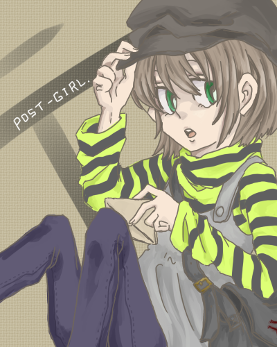 何にも絵が無いのも寂しいので描いてみたよ、なオリジっ娘。 小さな島の郵便屋さん。 相棒のにゃんこがいたりとかいなかったりとか。